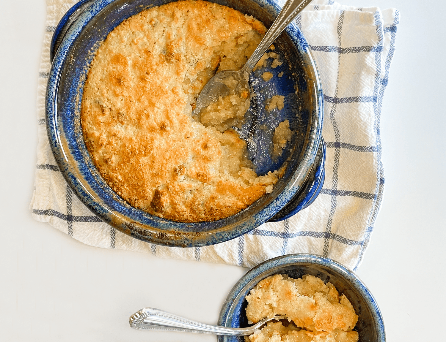 This recipe shows the ingenuity and resourcefulness of cooks in Appalachia. It is simple and quick, so it can easily be prepared right after dinner for an evening treat or dessert. It makes a thick batter, which when baked gets crunchy on top, but is creamy inside. it can be served with freshly whipped cream or a scoop of your favorite ice cream, but is delicious on its own.