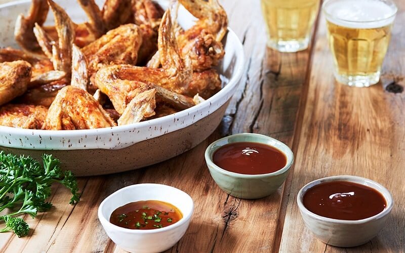 You can easily make restaurant-style chicken wings at home using our Devil’s Backbone Seasoning, barbecue sauces, and our Tennessee honey. The secret is to fry them first until partially cooked, drizzle with honey and hot pepper sauce, then bake in the oven until crispy and done. Serve with dipping sauces, such as a honey and soy sauce blend.