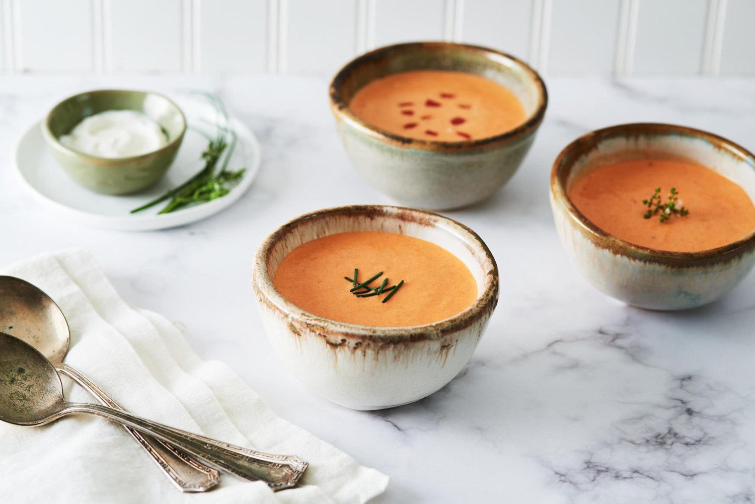- Stir in the roasted red peppers, and purée the mixture in batches using a food processor or blender. Turn the purée into a mixing bowl, and fold in the sour cream, and season to taste with one of the seasoning blends, or salt and pepper. Cover the bowl with plastic wrap and place in the fridge to chill at least 2 hours, preferably overnight.