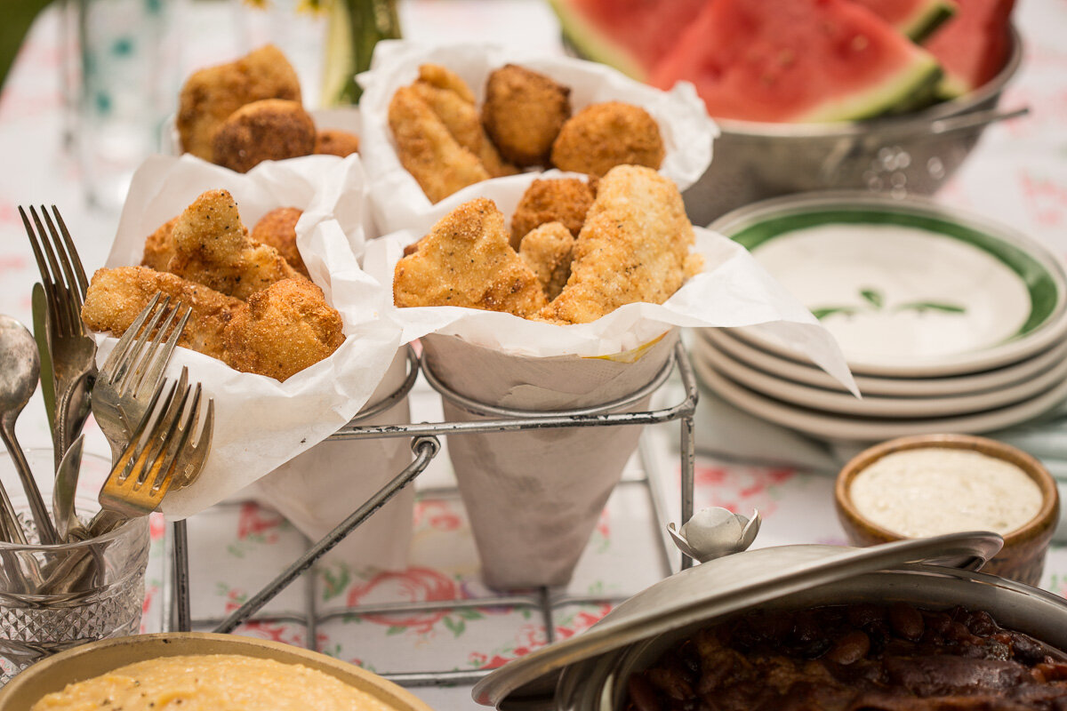- Drain on a rack set over sheet pan and keep warm in a 200-degree oven until all the fish is fried. Serve with lemon, tartar sauce, and fried hush puppies.