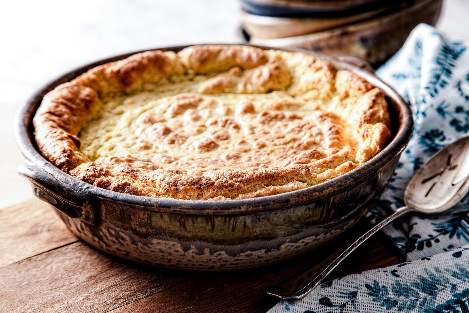 Similar to a souffle, the spoonbread will puff up high in the oven, and quickly collapses once removed from the oven. The flavors are similar to cornbread dressing, and the texture is both custardy and fluffy. This makes a great side dish.