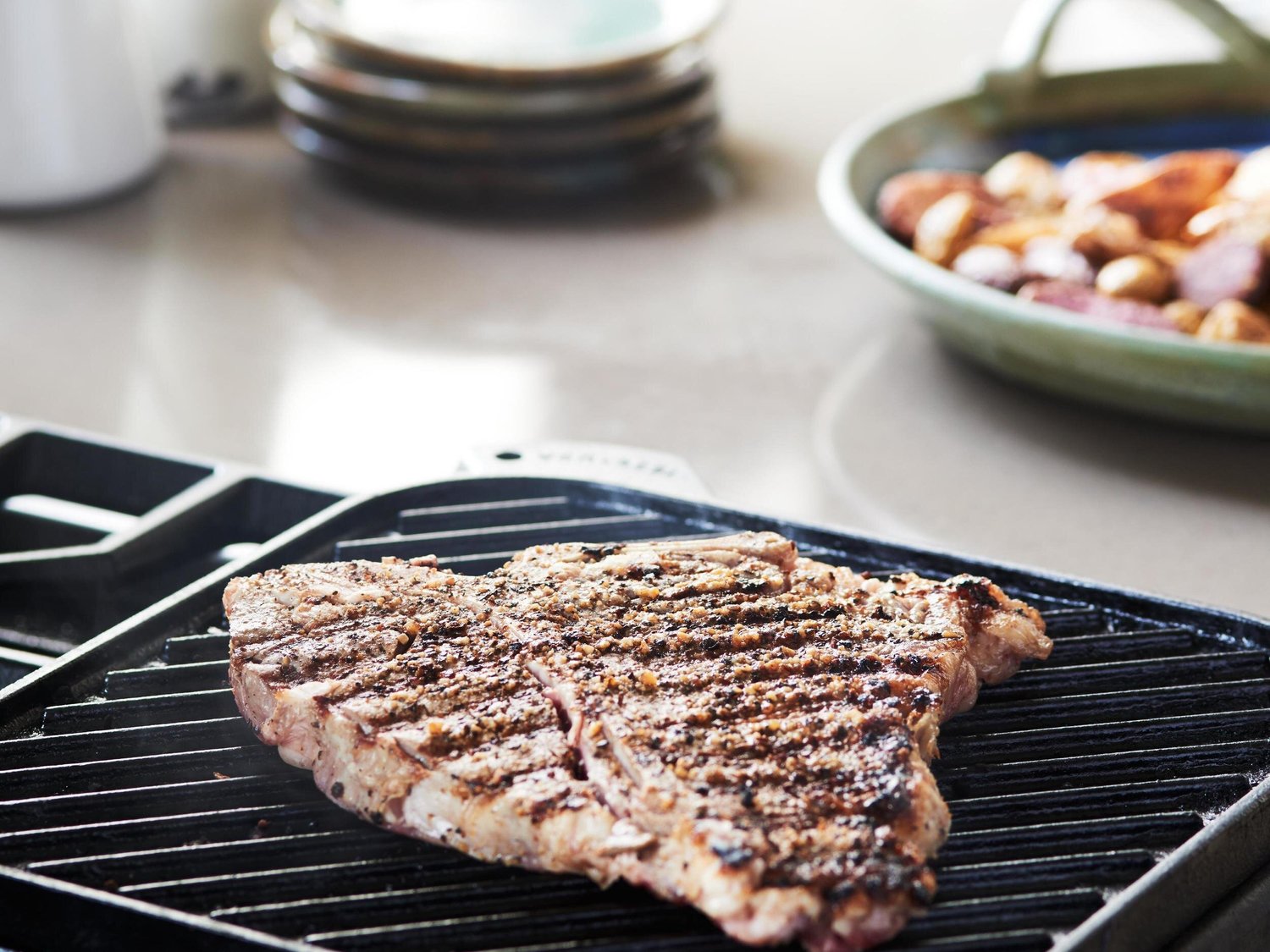 So, this Father’s Day, why not treat dear old dad to something all-American and sure to please — a grilled steak. And it could not be easier, even if you don’t grill outdoors. Use our Old Mill Devil’s Backbone Seasoning and a Lodge cast iron grill pan for cooking.