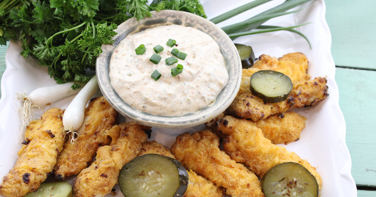 Pickle Brined Chicken Tenders with Salsa Ranch Dip