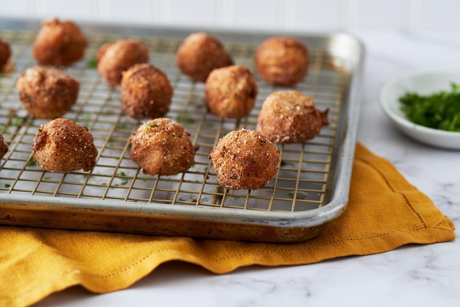 The key to perfection is chilling the cheese balls before coating and frying them to golden perfection. These fritters are so delicious, you won’t be able to stop at just one!