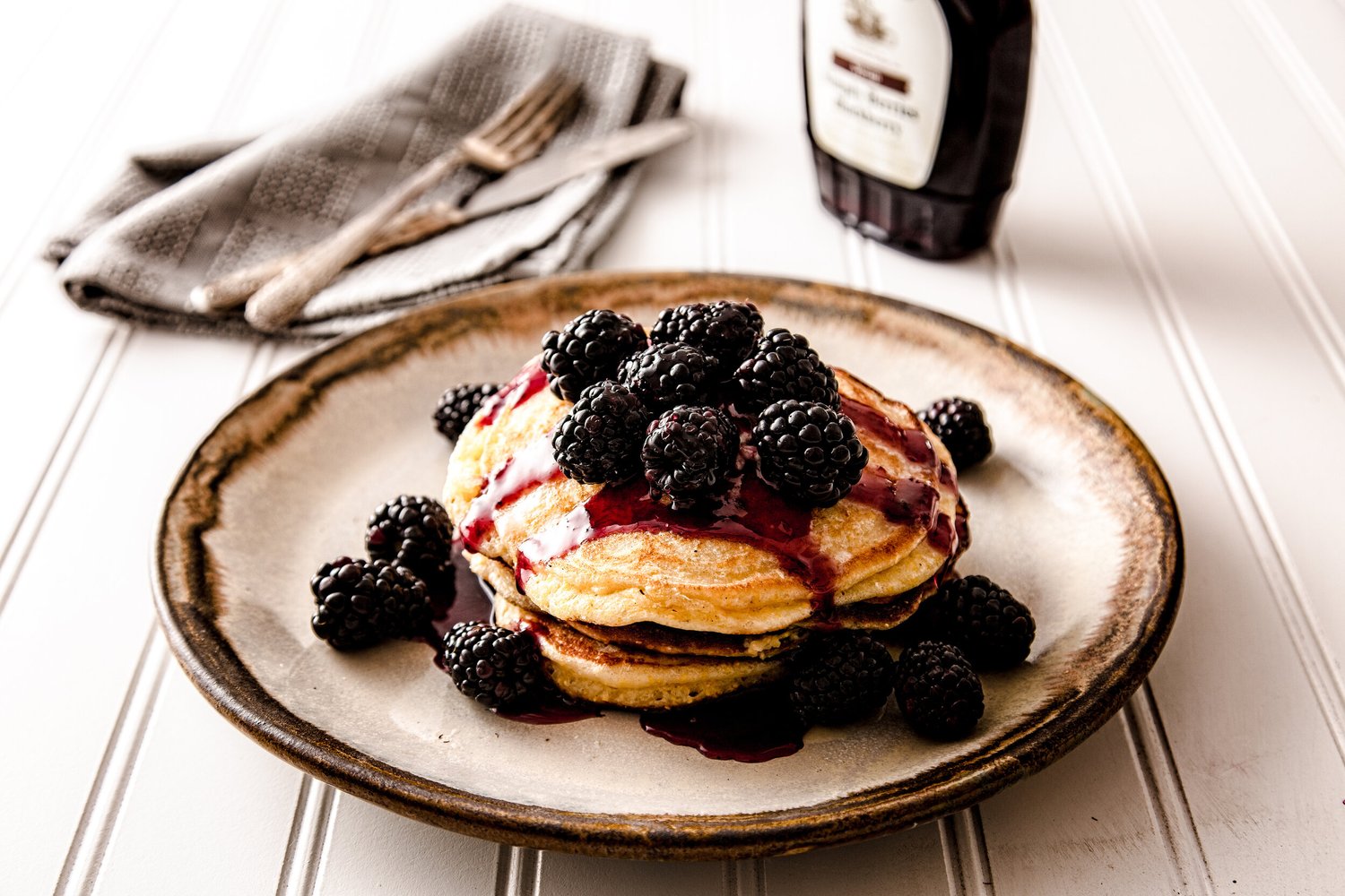 Perfectly Balanced: Not too sweet, the pancakes provide the ideal base for the sweet and tangy blackberry syrup.