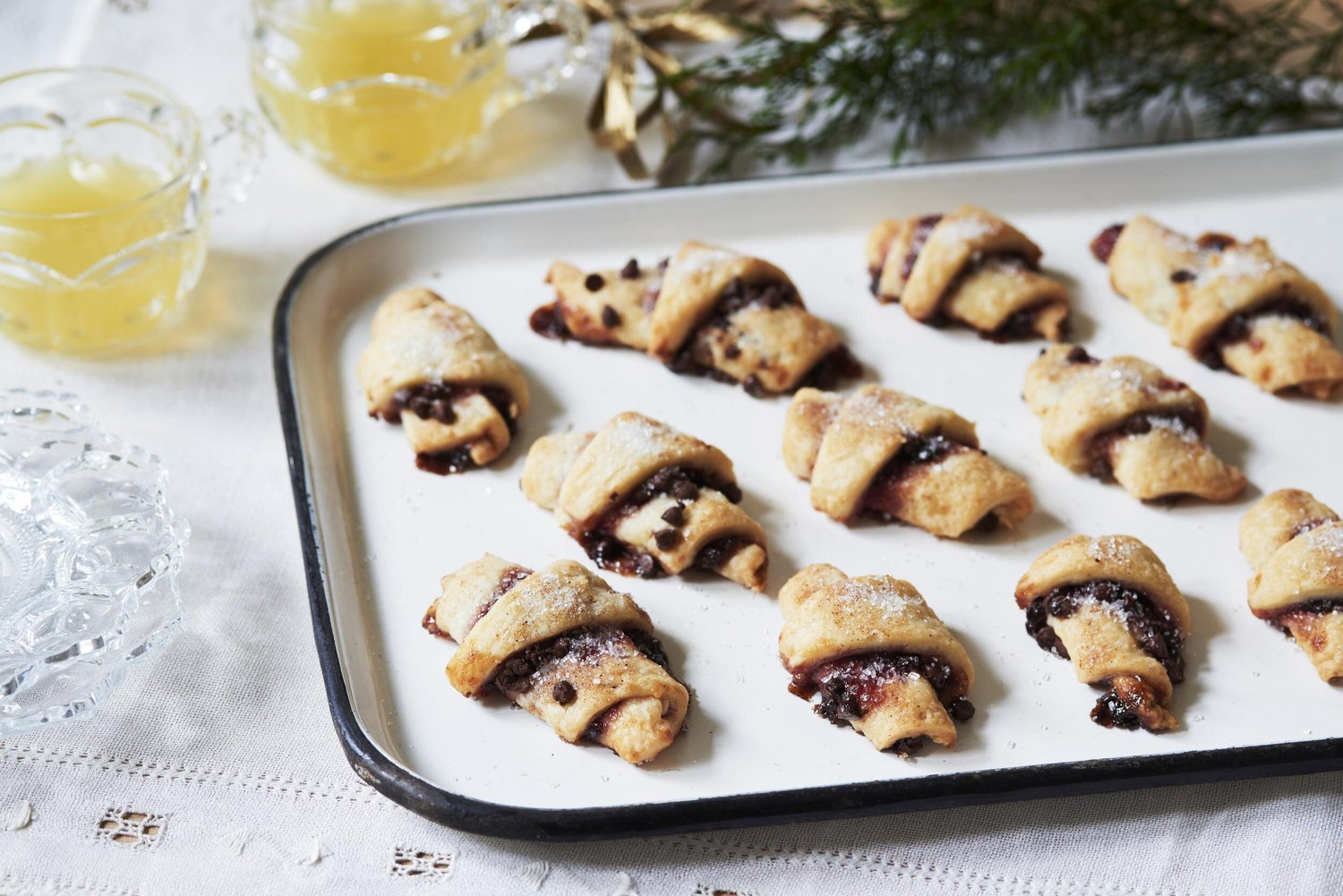 - Bake the crescents until the sides are golden brown, 20 to 25 minutes. Remove the crescents, using a metal spatula, onto a cooling rack. Let them cool before serving. Repeat with the remaining dough and filling.