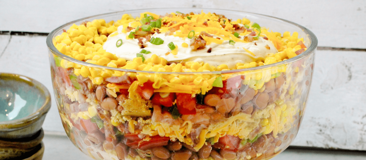 Discover the timeless charm of Dean's Layered Cornbread Salad, a must-try Southern classic. This vibrant dish brings together layers of cornbread, beans, tomatoes, green peppers, and more—each ingredient adding its own touch of Southern tradition.