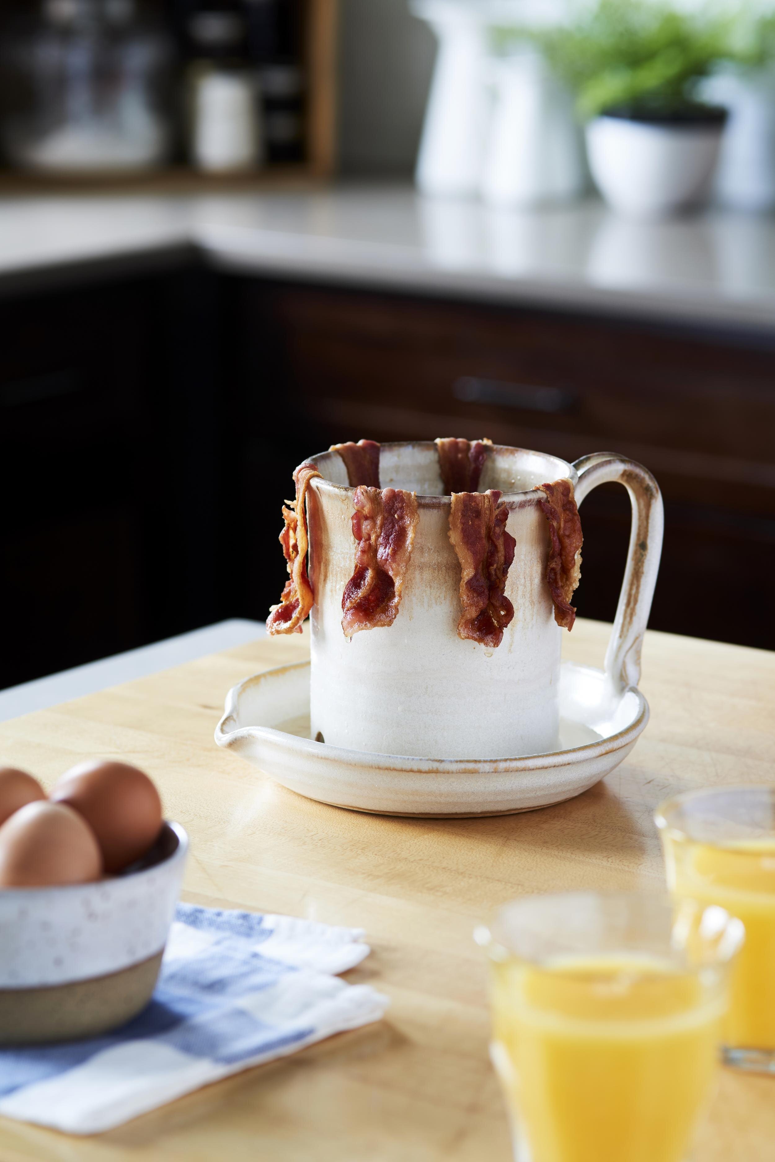 Bringing home the bacon gets a lot easier with our pottery bacon cooker. It’s a foolproof way to cook bacon for summer BLTs.