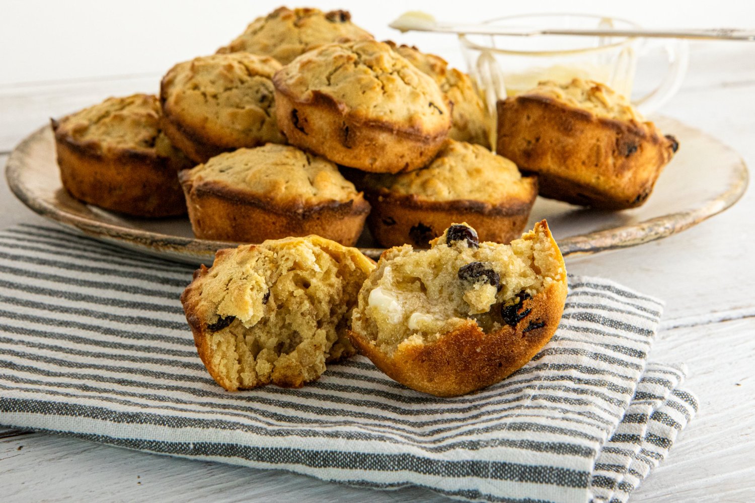 How to make Oatmeal Raspberry or Blueberry Muffins: Instead of raisins, fold in 1 ½ cups (6 ounces) fresh or frozen (thawed and drained) raspberries or blueberries.
